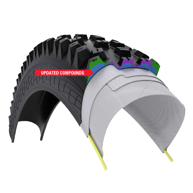 After years of development and numerous revisions, WTB has also updated both Fast Rolling and High Grip compounds to not only increase tread longevity, but also improve grip at the same time. Especially in wet conditions. Blue is harder compound and Green is softer compound.