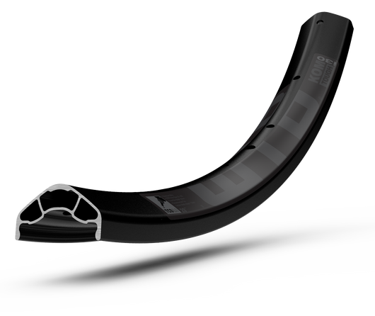 Two vertical supports within the inner cavity drastically increase the strength and lateral stiffness of our KOM Tough rims. These additional reinforcements counteract spoke loads, which improves stiffness and minimizes deflection in rocky, unpredictable terrain.