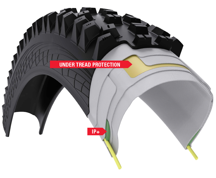 The more layers of rubber present in the tread, the better control we have over the ride characteristics. TriTec compound features three layers to provide optimal levels of traction, support, and durability. A base of high durometer rubber supports the entire tread and is capped by medium stiffness center knobs and softer side knobs.