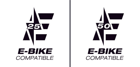 Tires with an E25 or E50 icon on the sidewall are designed to withstand the additional weight and forces of modern e-bikes. E25 tires are constructed with additional material to not only strengthen the tire and prevent punctures, but also provide additional support throughout the tire. E50 tires meet ECE-R75 standards for the increased load and speeds associated with e-bikes reaching speeds up to 50 kph.