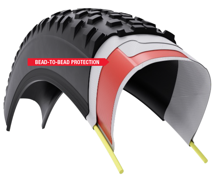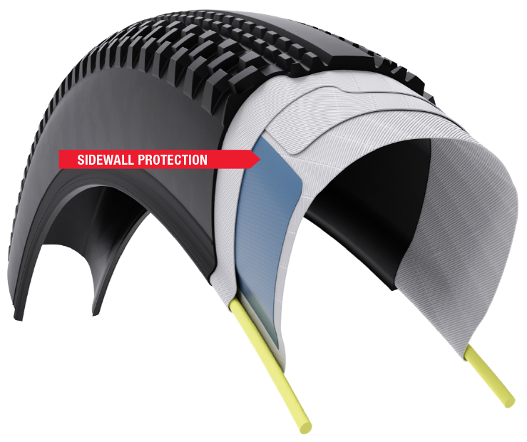 We offer two puncture protection options. SG2 provides a bead-to-bead puncture protection layer for complete coverage at a minimal weight. Only available on TCS Light tubeless tires.