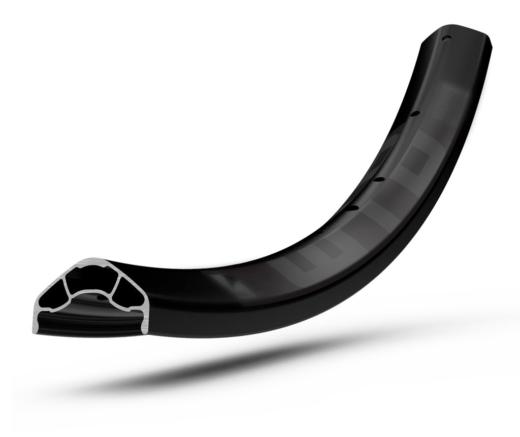 Two vertical supports within the inner cavity drastically increase the strength and lateral stiffness of our KOM Tough rims. These additional reinforcements counteract spoke loads, which improves stiffness and minimizes deflection in rocky, unpredictable terrain.