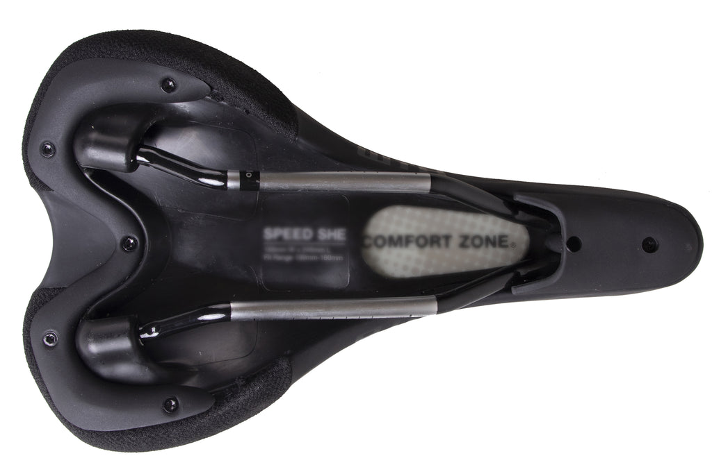 This female-focused saddle has become one of our most popular models with its ergonomic shape, smooth curves and low-profile stitching. Its medium width and rounded, fall-away profile make the Speed She an easy-to-ride, easy-to-maneuver saddle.